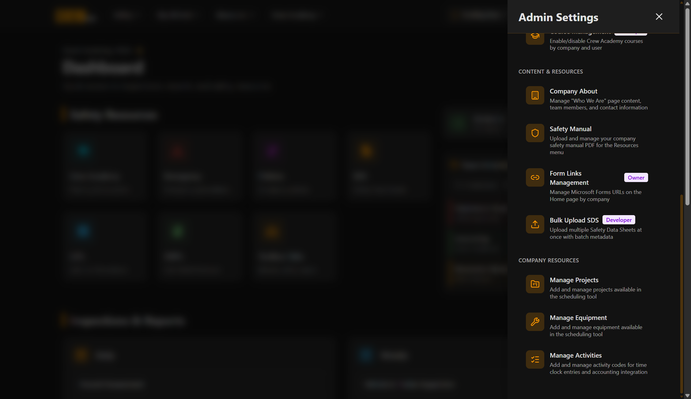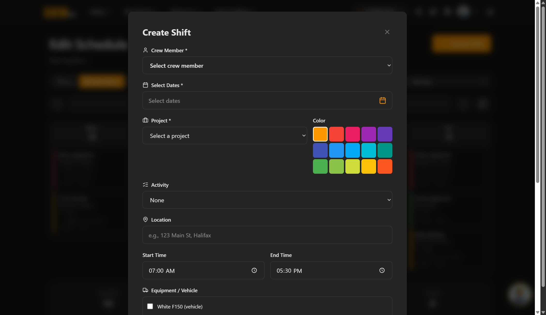 Schedule Management gives you complete control over crew member assignments, project planning, and resource allocation. Create shifts, assign equipment, manage projects, and ensure your crew knows exactly where to be and when.