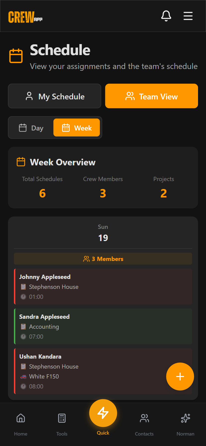 - Other crew members on the same shift (if Team View)